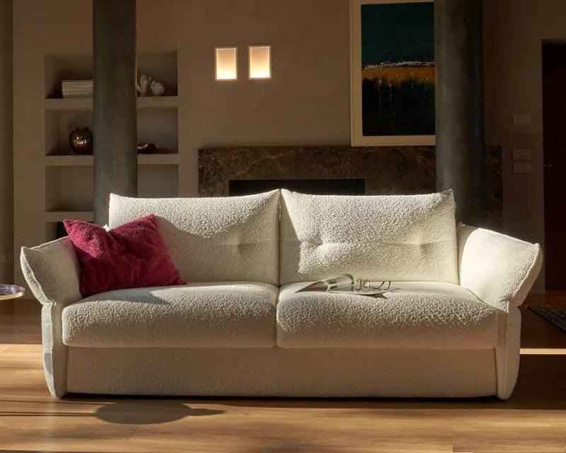 DOBBLE – rozkládací pohovka navržená a zkonstruovaná tak, aby vám poskytla neuvěřitelný pocit, že se vznášíte na obláčku. Měkké tvary jsou umocněny jemnou krémovou látkou, která má všechny vlastnosti potřebné k tomu, aby chvíle, které prožijete na pohovce DOBBLE, byly báječné a podněcovaly snění, ať už ve spánku, nebo při lenošení.