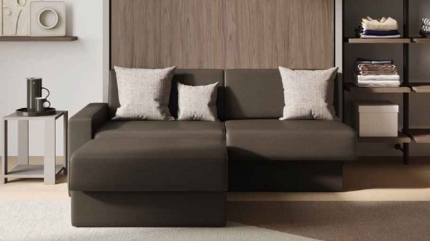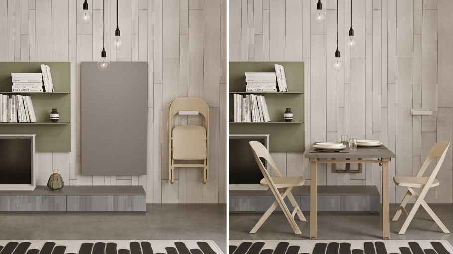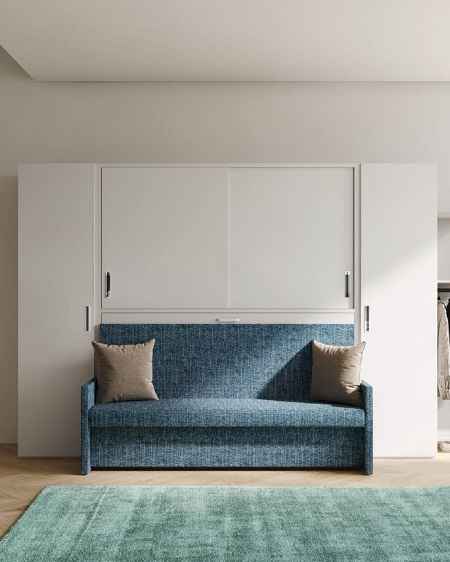 Sklápacia posteľ dokáže v malej obývačke zázraky a spája všetko potrebné do jedného šikovného kusu nábytku. Pohovka cez deň, posteľ v noci. Alebo môžete mať namiesto pohovky rozkladací jedálenský stôl.