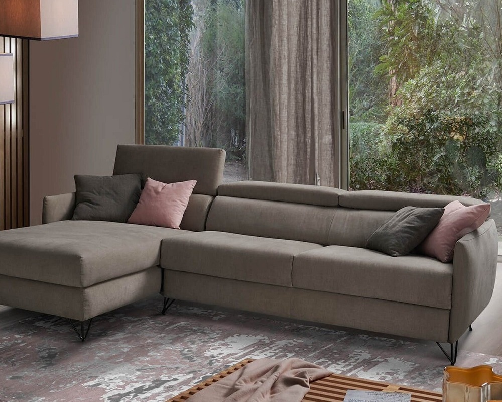 Pohovka VICTOR se představuje sofistikovaným designem s opěrkami hlavy a nastavitelnými područkami pro pohodlný odpočinek, kovové nohy jsou lakované – černé nebo šedé.